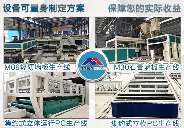 瑪納公司作為裝配式隔墻板設備廠家,產品主要涉及墻板設備,其中輕質隔墻板設備自動化程度高,運行平穩,深受客戶的青睞,公司裝配式隔墻板設備生產出的制品在質量、保溫、隔音、強度等方面均超過國家標準。設備實現了新型建筑隔墻板材的工業流水線生產,大大降低了生產工人的勞動強度,墻板設備的自動化程度高,生產過程無噪音無三廢排放。