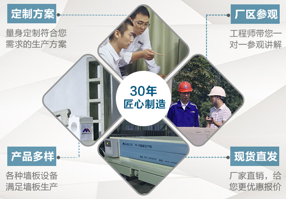 墻板生產線新型墻板設備的瑪納公司本著墻板設備是為墻板生產服務、墻板是為工程服務、工程是為人們生活服務的宗旨,且設計和改造的墻板設備達到了預期效果,并在全國保持技術領先地位,公司生產的墻板設備受到了國內外用戶的一致好評,目前瑪納公司的墻板設備已成為行業中受用戶信賴的知名品牌。