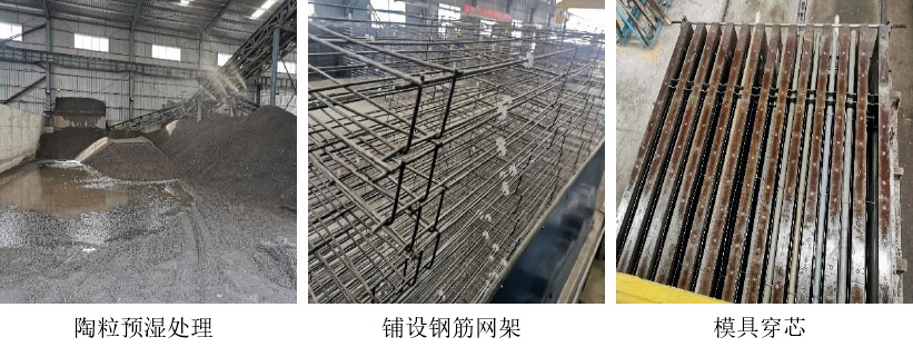 其中,常壓蒸汽養護分為升溫階段、恒溫階段和降溫階段:升溫(30~50℃,1h);恒溫(50℃,5.5h);降溫(20~30℃,0.5h),蒸汽養護時間為 7h,此時空心條板的抗壓強度可達到 5MPa。