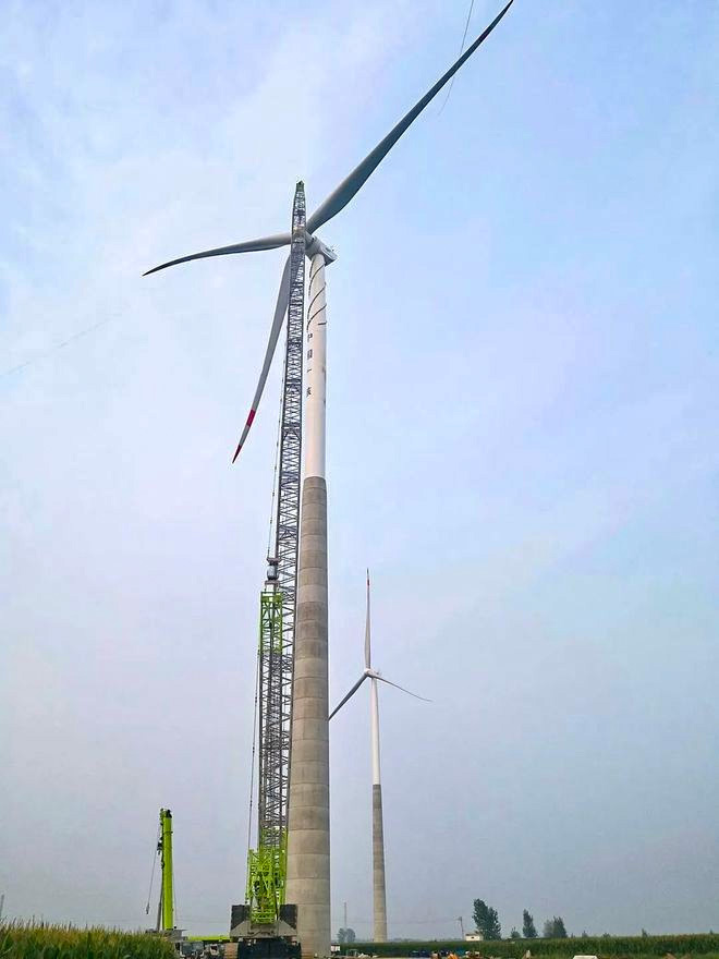 混合式塔架具有混凝土塔筒剛度大、阻尼高、鋼塔筒安裝快、結構輕等優點。而且采用預制混塔后,風力發電機組的輪轂高度得到了大幅度提升,光混塔部分就突破了百米大關,對中東部地區低風速地帶的風能利用率大大增加。