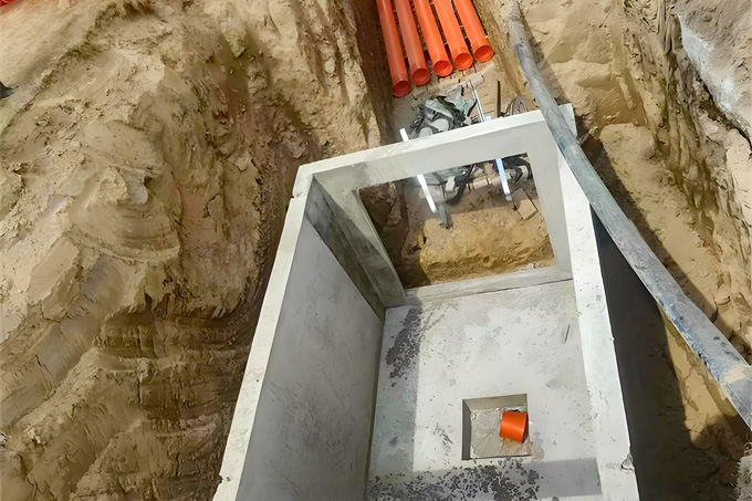 工藝流程:井預制 - 放樣 - 基坑開挖 - 墊層施工 - 運輸 - 吊裝 - 防水處理