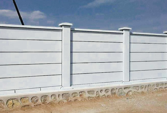 水泥圍墻條板寬0.5m-0.6m,長3m-4m,厚60mm-150mm,其他規(guī)格也可定制。